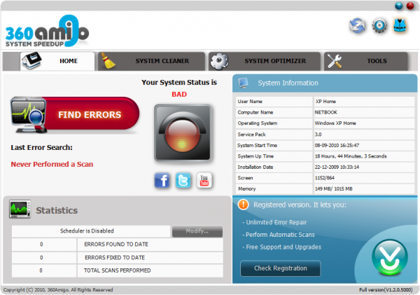 360Amigo System Speedup – полнофункциональный и всеобъемлющий инструмент, предназначенный для оптимизации работы системы и исправления ошибок, возникающих про долгой эксплуатации.