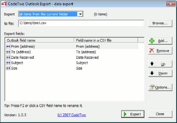 CodeTwo Outlook Export – бесплатное программное обеспечение для экспорта данных из Microsoft Outlook в текстовый файл CSV. По сравнения со стандартными функциями экспорта программы Outlook, данная программа значительно расширяет эти функции.