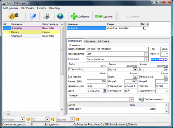 VideoCat – программа для каталогизации домашней коллекции видеодисков. Программа имеет удобный, не обремененный лишними деталями интерфейс, который понравится любому пользователю.