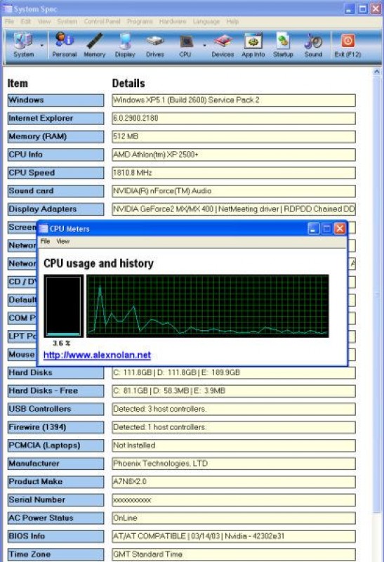 System Spec – программа для отображения всевозможной информации о различных узлах вашего компьютера. Программа не требует инсталляции и может быть запущена со съемного usb-устройства.