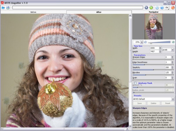 AKVIS Magnifier – эффективное инструментом для увеличения разрешения изображения. Программа работает по передовому алгоритму, который позволяет увеличивать изображения без особой потери качества.