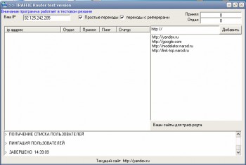 Главный смысл этой программы состоит в том что обмен трафиком производится исключительно напрямую между такими же пользователями этой программы!. особенностью программы является то, что происходят прямые переходы, или переходы со страниц пользователей, и поэтому во многих счетчиках будет указаны не хосты с сёрфингов а прямые переходы на ваш сайт!. Программа в данный момент находится в тестовом режиме. Прошу, кто найдет какие-нить ошибки,пишите в коменты или мне на почту [email protected].