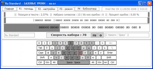 Kbtrainer – небольшой клавиатурный тренажер для обучения слепой печати. Есть возможность обучения печати любого языка.