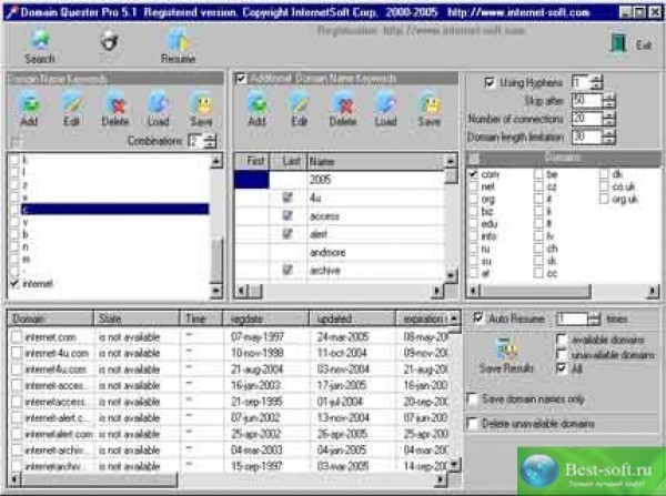 Программа позволяет подобрать наилучшее доменное имя для вашего вебсайта. Вы сможете сформировать на основе заданных ключевых слов большое количество имен и проверить - можно ли их зарегистрировать. Предусмотрена возможность обрабатки большого объема данных за счет многопотокового поиска. Возможен одновременный поиск сотен имен.