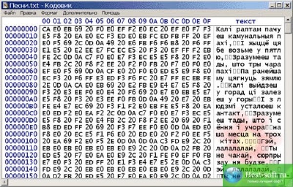 Кодовик сочетает в себе hex-редактор и обычный текстовый редактор. Программа обладает всеми стандартными средствами редактирования как текста, так и шестнадцатеричного кода. Программа подходит для написания заметок, писем, напоминаний и любого другого текста, не требующего серьёзного форматирования, а также для просмотра и несложного редактирования содержимого любого файла. Основные возможности программы: - наличие шкурок (skins), позволяющих изменять внешний вид программы; - быстрая работа с файлами большого размера; - быстрое переключение между просмотрщиками нажатием одной клавиши (F6); - поддержка кодировок Windows-1251, OEM, KOI8, можно добавлять самостоятельно новые кодировки; - закрепление за разными просмотрщиками отдельных расширений файлов; - навигация по списку последних редактированных документов; - получение информации об открытом документе. - Печать редактируемого документа как в режиме текста, так и в режиме hex-редактора.