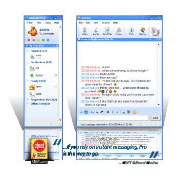 Trillian Astra – это Интернет-пейджер для обмена мгновенными сообщениями, поддерживающий практически все протоколы связи, такие как ICQ, Windows Live, Yahoo, AIM, Google Talk и т.д. Программа полностью бесплатна.