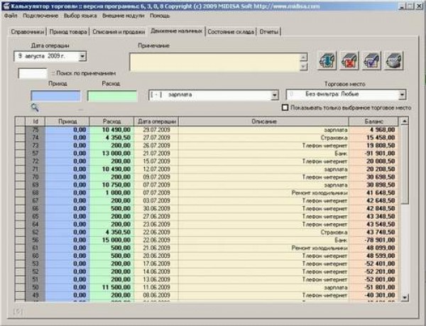 Программа упрощена до предела, в ней ведется только денежный учет, но при этом заложены несколько отчетов которые позволяют контролировать прибыль продаж за любой период времени.