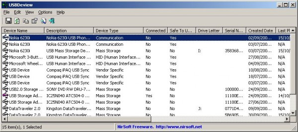 USBDeview – программа, отображающая список всех, когда-либо подключенных USB-устройств. Полученную информацию можно сохранить в виде подробного отчета.