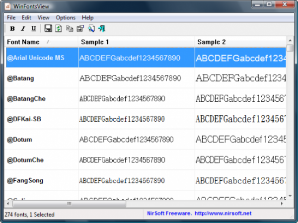 WinFontsView – маленькая, но очень удобная утилита для просмотра всех установленных в системе шрифтов. Отсканированные шрифты выводятся в виде удобной таблице, в которой для каждого есть описание.