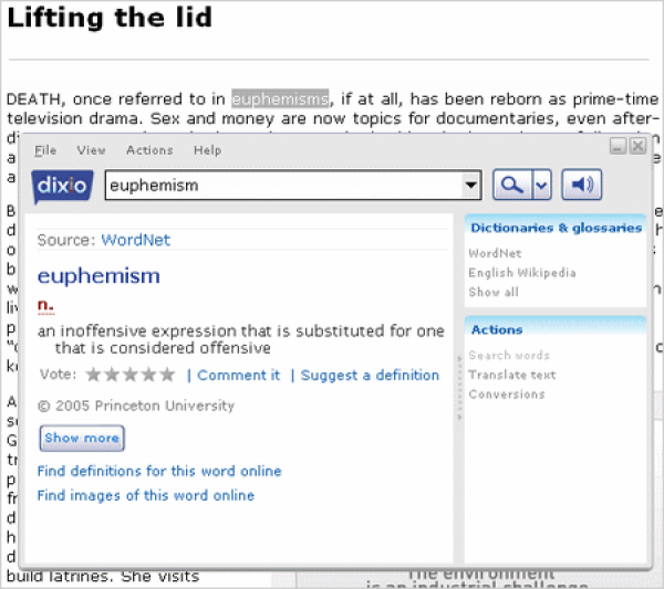 Dixio – программа, позволяющая всего лишь одним кликом на непонятном вам слове узнать его значение. Данный электронный словарь очень прост в эксплуатации и всегда находится под рукой.