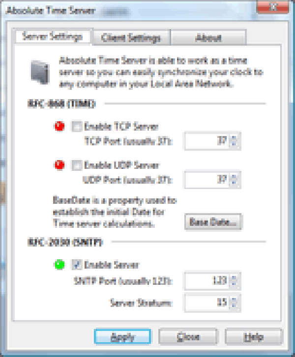 Absolute Time Server представляет собой полнофункциональный временной клиент / сервер, который работает как служба WinNT и полностью совместим с RFC-868 и RFC-2030.