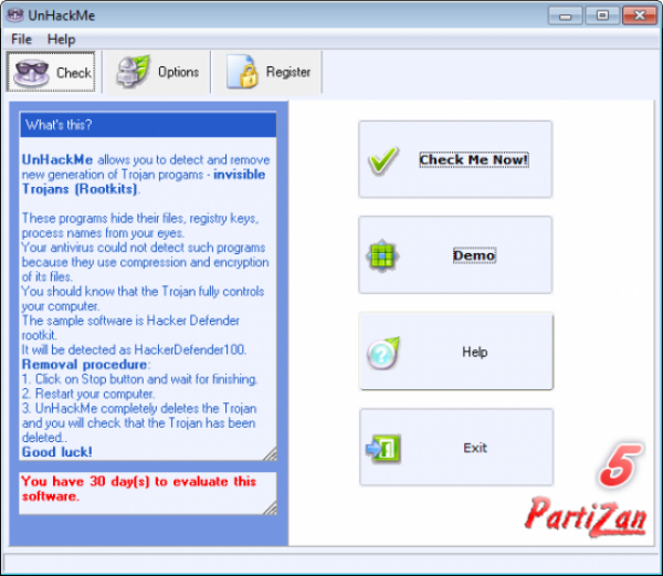 UnHackMe – удобная программа, которая позволяет обнаруживать и удалять такой вид троянских программ, как руткиты (программы, маскирующие вторжение для получения прав администратора).