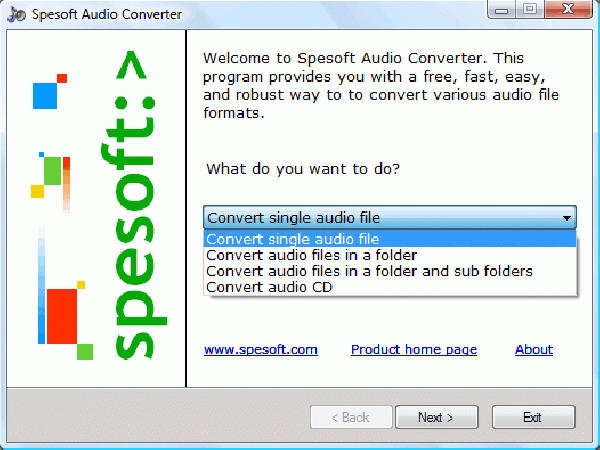 Spesoft Free Audio Converter – бесплатная программа для конвертирования музыкальных файлов с очень высокой скоростью и качеством. Данный продукт обладает интуитивным и понятным даже новичкам интерфейсом.