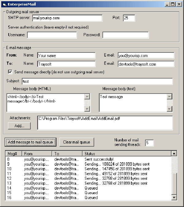 AddEmail ActiveX – программа, позволяющая создавать приложения, способные отправлять текстовые HTML сообщения электронной почты с вложениями и изображениями, используя встроенный SMTP протокол.