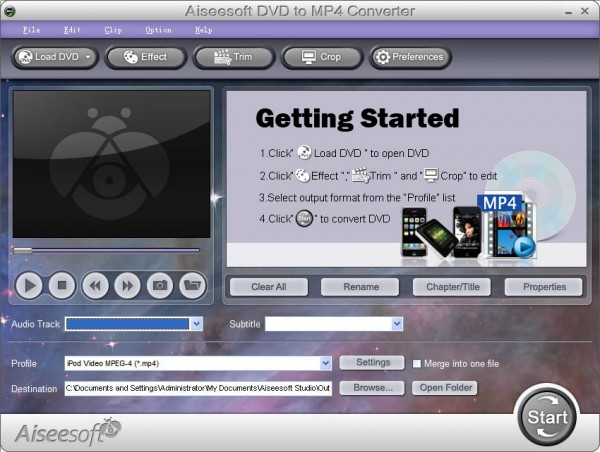 Aiseesoft DVD to MP4 Converter является простым в обращении профессиональным конвертером из DVD в MP4. Программа обладает высокой скоростью и высоким качеством преобразования видео.