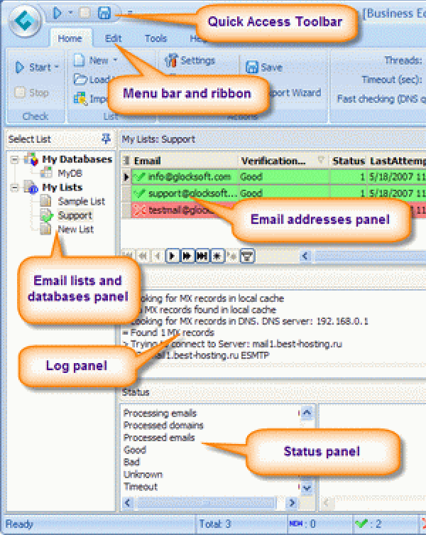 5. Импорт списков рассылки для проверки из Paradox, DBase, Excel, Text (. CSV, HTML Word, Lotus 1-2-3, QuattroPro, XML, MS Access файлов и таблиц DBISAM (. DAT файлов)