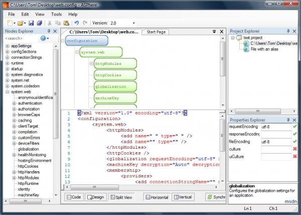ASPhere это бесплатная утилита, предназначенная, прежде всего, для создания и редактирования файлов конфигурации для ASP.NET. Так же вы можете использовать ее для просмотра и редактирования обычных файлов XML и текстовые файлы.