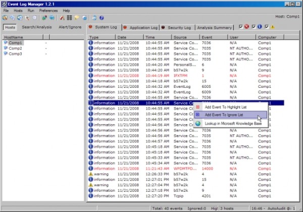 Event Log Manager - простое решение для просмотра и анализа событий, происходящих в компьютере, подключенном к сети. С помощью визуального представления, критические события, такие как аппаратные ошибки, ошибки программного обеспечения, предупреждения системы безопасности может быть изолирована и решена, прежде чем возникнут серьезные последствия.
