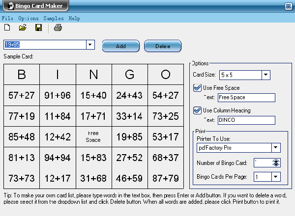 Bingo Card Maker является простым в использовании инструмент для создания и печати обычных и случайных карт бинго. Программа особенно полезна для учителей и родителей, которые любят проводить соревнования по бинго.
