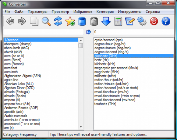 Converber – небольшая удобная программа способная конвертировать огромное количество единиц измерения в 38 категориях. Программа портативна, то есть не требует установки и может быть запущена со съемного носителя.