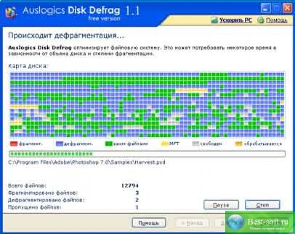 Disk Defrag позволит оптимизировать и упорядочить файлы вашего жесткого диска, дефрагментировать файловую структуру и ускорить работу приложений и Windows. С помощью Disk Defrag диск вашего компьютера станет работать безукоризненно быстро и стабильно. В программе использован ряд алгоритмов, которые позволяют провести дефрагментацию диска намного быстрее, чем стандартная утилита, а благодаря удобному отчету вы будет точно знать, что было сделано.