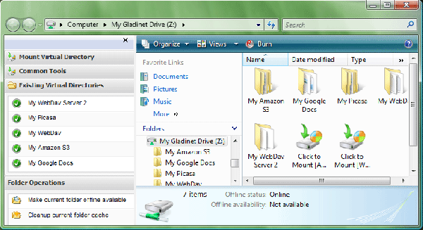 Gladinet Cloud Desktop Starter Edition является удобной программой, представляющей своеобразное хранилище для файлов, размещенных на локальных диска, в том числе FTP и WebDAV серверах.