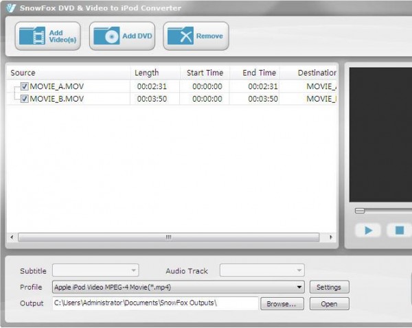 SnowFox DVD & Video to iPod Converter – это отличный конвертер, с помощью которого вы сможете преобразовывать DVD и обычное видео для своего IPod. Программа очень проста в освоении, что делает ее привлекательной для людей не знакомых с компьютером.