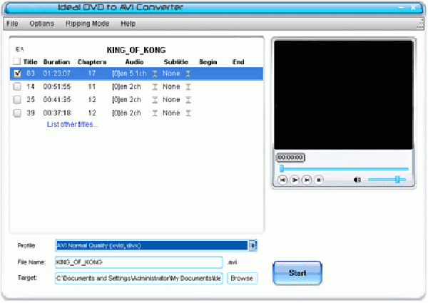 Ideal DVD to AVI Converter – удобная программа для конвертирования DVD-video дисков в популярный формат AVI. Программа способна копировать даже защищенные региональным кодом диски.