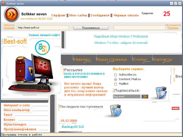 Это уникальный продукт. Данная система увеличивает доход от рекламы на сайте на 80%. Нет ЭТО НЕ КЛИКЕР!! Это клиент для работы в системе. Система увеличивает количество цельных посетителей которые кликнут по рекламе на вашем сайте!! Реальный способ заработать на рекламе. качай и используй!!