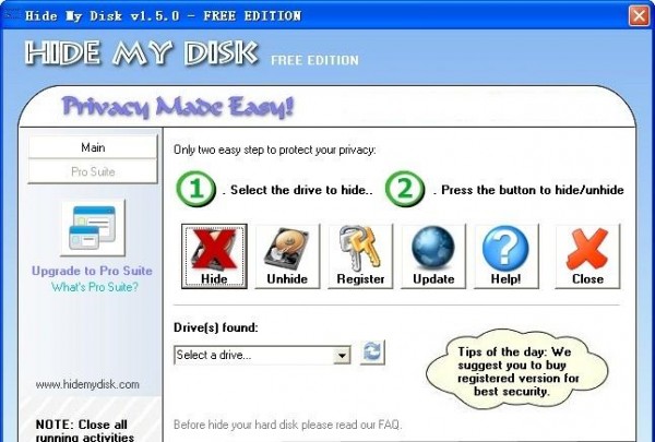 Hide My Disk – это программа, позволяющая вам скрывать любой жесткий диск нажатием одной кнопки. Вы можете запретить доступ к программе с помощью пароля. Только вы можете открыть ваш жесткий диск!