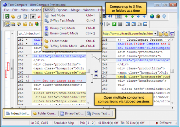 UltraCompare – мощное программное обеспечение, предназначенное для сравнения или слияния файлов. Есть возможность сравнения в двоичном формате двух или трех файлов одновременно.