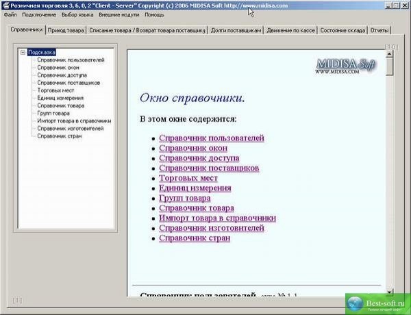 Программа создана для облегчения труда предпринимателей в розничной торговле. Например Ваши продавцы работают по определенным периодам (например по неделе). Каждую неделю происходит инвентаризация, чтобы определить остатки продавца. Но очень сложно отследить убытки или махинации продавца. Программа создана с целью создания полного контроля за торговыми точками. Работа программы проста до безобразия: 1) Вносим в программу данные в хаотичном порядке (конечно с указанием точных дат). - Поступление товара. - Списание товара - Расчет с поставщиками. и т.д. 2) При пересмене продавцов распечатываем форму с наменованиями товара (для продавцов), в которую они вносят и проверяют количество товара и стоимость его. 3) По полученной от продавцов заполненной форме, заполняем остатки на складе в программе. 4) Переходим в окно Отчеты и получаем всю информацию за период продаж. Программа имеет многопользовательский интерфейс. Например: Заполнение остатков на складе и движение товара можно возложить на самих продавцов, при этом можно настроить так программу, что они не будут видеть окна отчетов и настроек. А в момент отчета Вы (предприниматель) приходите на торговую точку, заходите в программу под своим паролем и видите всю деятельность торговой точки. Если Ваш офис находится в одном помещении с торговым помещением, то программа способна работать в "клиент - серверном" варианте т.е. 1) Устанавливаем программу сервер на любом из компьютеров локальной сети. 2) Подключаем к нему компьютеры продавца и предпринимателя. 3) Продавец будет вносить свою информацию по поступлению товара, списанию и т.д. а предприниматель сможет смотреть результаты работы в реальном врмени, а так же помогать продавцу вносить какие либо данные например по движению денежных средств, расчету с поставщиками и т.д.