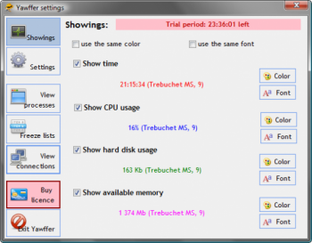 Yawffer – удобный инструмент для постоянного мониторинга параметров системы, таких как загруженность центрального процессора или оперативной памяти. Программам имеет настраиваемый внешний вид.