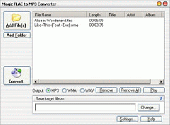 Magic FLAC to MP3 Converter – удобный конвертер, позволяющий вам в кротчайшие сроки преобразовывать FLAC (Free Lossless Audio Codec) файлы в менее громоздкие, и поддерживаемые большинством плееров MP3, WMA и WAV.