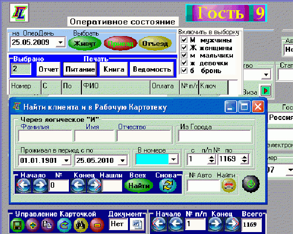 Автоматизация портье "Гость" – удобная и простая программа для автоматизации портье, администратора гостиницы, отеля, базы отдыха, автокемпинга, пансионата и печати уведомления для ФМС.