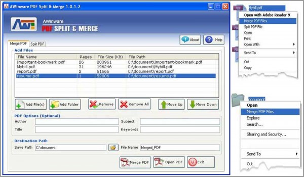 AWinware PDF Split and Merge 1.0.1.2