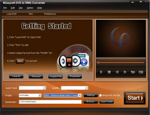 4Easysoft DVD в Converter – это специально предназначенные ПО для преобразования DVD в WMA аудио файлы. Этот конвертер также дает возможность конвертирования DVD в MP3, MP2 аудио с быстрой скоростью преобразования и без потерь качества звука.
