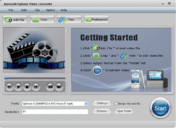 Aiprosoft Gphone Video Converter - это профессиональный видео конвертер, который может преобразовывать форматы видео в основныеGphone-форматы, такие как 3GP, MPEG4, H.263, H.264, WMV и т.д.