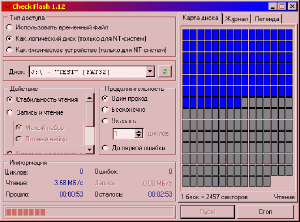 Check Flash – небольшая программа для тестирования и форматирования флеш-накопителей. Обладает высокой скорость работы и очень понятным и простым интерфейсом.