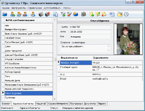 • Адреса и Контакты – инструмент для создания записей с возможностью добавления различных типов контактов, которые вы можете создавать, редактировать и т.д. и т.п.;
