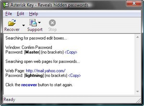 Asterisk Key – программа, с помощью которой вы сможете увидеть пароль, скрытый звездочками. Действует программы очень просто: вам просто нужно запустить ее параллельно с приложением где пароль спрятан за звездочками.