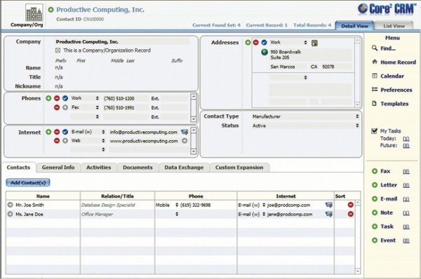 Core2 CRM - программа для людей занятых в каком либо бизнесе, которая помогает управлять компанией, группами людей, персональными и корпоративными контактами, электронной почтой и т.д.