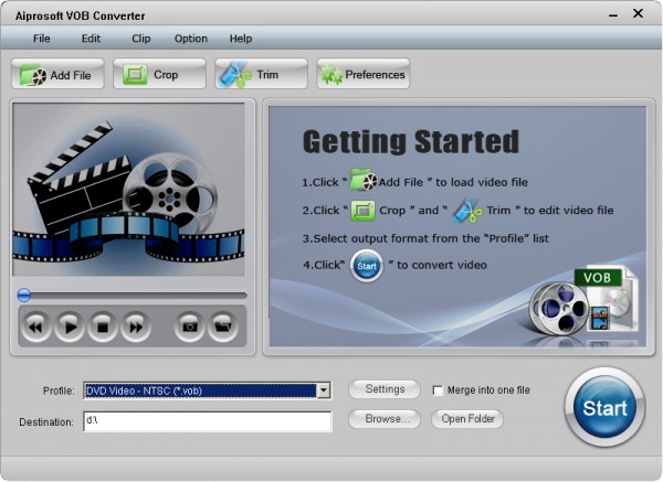 Aiprosoft VOB Converter является профессиональным инструментом для преобразования наиболее популярных видео форматов в DVD-видео, которое вы затем сможете записать на диск и просмотреть на обычном DVD проигрывателе.