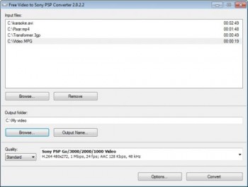 Free Video to Sony PSP Converter – это бесплатный виедоконвертер, позволяющий преобразовывать видео файлы различных форматов в МР4 формат (H264, AAC) для проигрывания на приставках PSP.
