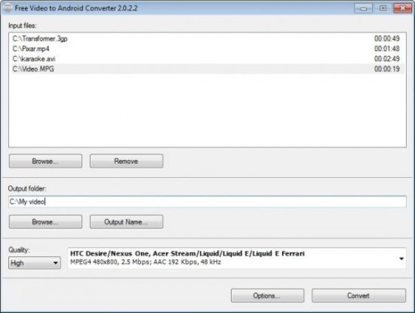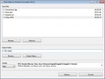 Free Video to Android Converter – это бесплатный виедоконвертер, позволяющий преобразовывать видео файлы различных форматов в МР4 формат (H264, AAC) с разрешением, подходящим для Android OS.