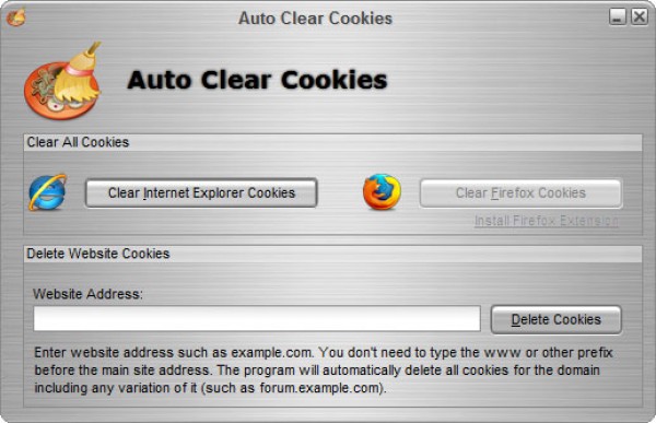 Auto Clear Cookies – удобная программа для очистки кукис популярных браузеров Internet Explorer и Firefox. Можно очистить как все кукис полностью, так и отдельно для выбранных сйтов.