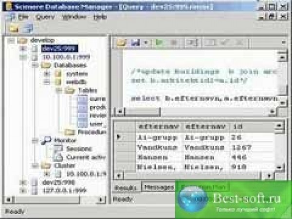 ScimoreDB embedded database является SQL-совместимой СУБД. Продукт не требователен к системным ресурсам, обеспечивая при этом высокую производительность (в том числе и при работе с большими объемами данных). В отличие от других подобных решений, ScimoreDB поддерживает значительное количество функций, характерных для серверных СУБД. Разработчикам предоставляется бесплатное решение для создания БД – ориентированных приложений практически любого уровня сложности, не критичное к объему данных.В независимости от выбранного Вами языка программирования (VB, VC++ или C#), ScimoreDB прост в настройке и использовании. При этом Вы можете использовать как обычные C++ классы, так и провайдер .Net. У Вас не возникнет проблем с установкой и распространением приложений, сделанных с помощью ScimoreDB.Основные свойства:• Полная поддержка SQL 98;• Полная поддержка ACID транзакций;• Надежность и стабильность; Более 375.000 инсталляций;• Невысокая требовательность к ресурсам;• Гибкие настройки;• Простота использования;• Простота распространения.