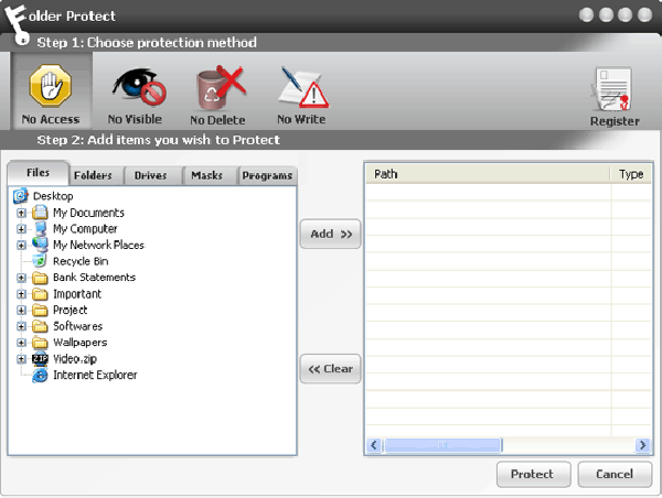 Folder Protect - это новая концепция в области безопасности данных. Она позволяет защитить паролем и устанавливать различные права доступа к файлам, папкам, дискам, установленных программ и популярных расширений.