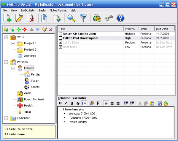 Swift To-Do List Profesional – программа для создания персонального списка дел. Поддержка экспорт в HTML и Excel имеет возможность печати для того чтобы список всегда был с вами. Приложение подходит как для личного и коммерческого использования.