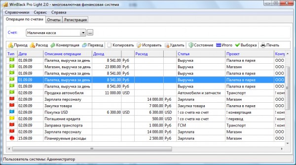 WinBlack Pro Light - программа позволяет вести многовалютный учет финансовых операций. С ее помощью можно вести как домашнюю бухгалтерию, так и дела предприятия. Простая в обращении, но мощная по возможностям программа позволяет отслеживать движение наличных денег, операции с банковскими счетами и кредитными картами, планировать доходы и расходы, разбивать операции по статьям, проектам и контрагентам.